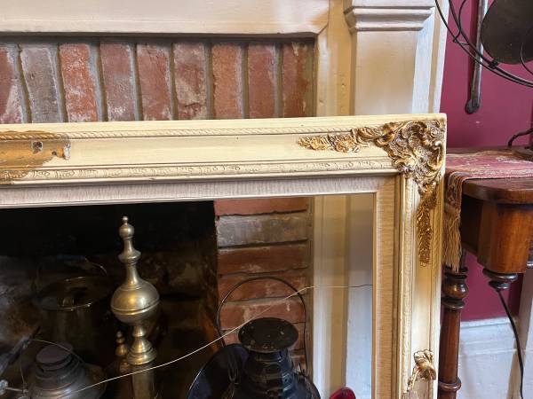 This is a good condition vintage picture frame. It has two spots where the decorative pieces are gone and the spots are painted in matching gold colors (See Pictures!). The outside dimensions are 43.5 inches wide and 32 inches tall. The inside dimensions are 36 inches wide and 24 inches tall. It’s a solid usable frame that is now ready for your home.