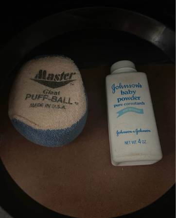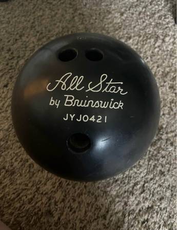 Great condition All Star bowling ball that includes vintage bag, bowling master giant puff ball, baby powder, vintage original black leather gloves, ball scrubs, and vintage bowling ball buffer tote polisher cloth.