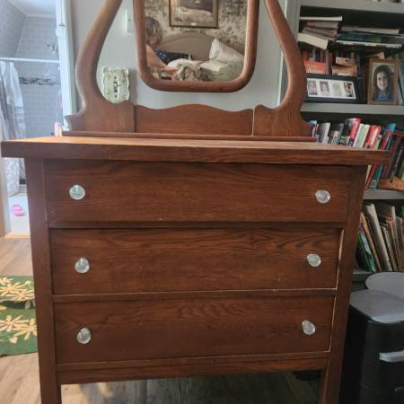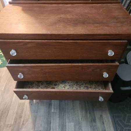 3 drawer dresser. One drawer needs new gluing. Great shape otherwise.