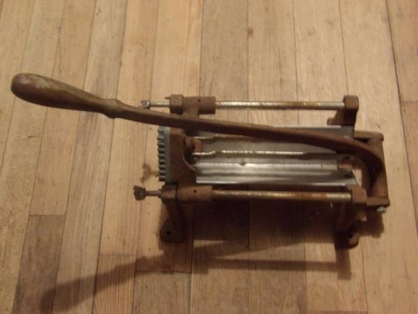 Antique Potato Slicer No. 29. Made by Bloomfield Industries, Chicago IL 1930's, 40's. Very heavy duty. Would be a great kitchen/farmhouse deco. Located in Salem, MO.