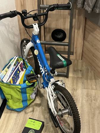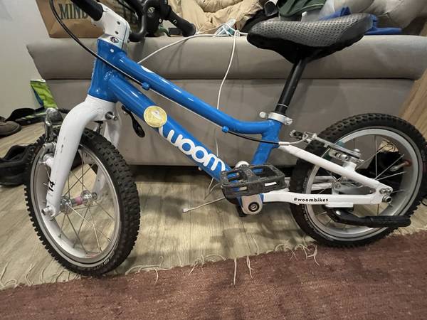 Woom bike 14“, for kids 3-5 years, can be used as balance bike without mounting the pedals. Lightweight, very durable. New $450. Can meet at Bass Bro in CO or at Walmart in Moberly.