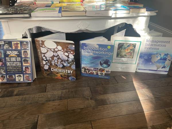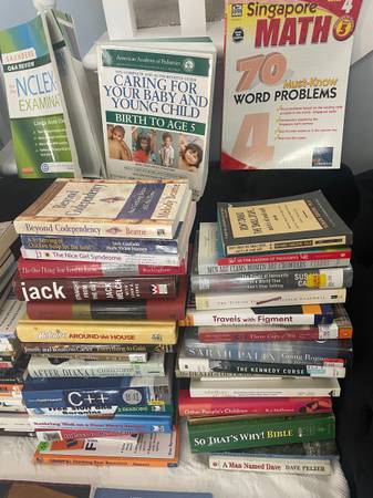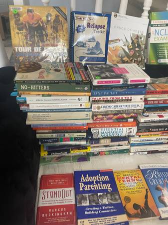Selling as a set of soft/hard cover books. Includes: sports, addiction, textbooks, family, psychology, self help, love, communication, leadership, Christian, biographies, engineering, politics, money, home, & technology are most of the topics. Pre-owned with light use/wear marks. Good condition. The list price is for all 157 books.