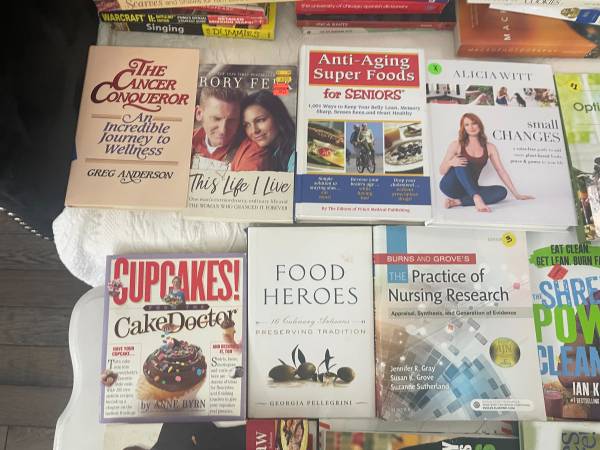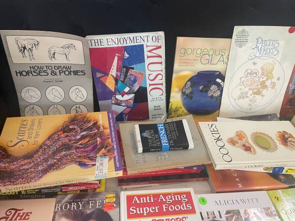 Selling a lot of 53 hard cover/soft cover books. They are a non-fiction variety including topics such as drawing, music, glass painting, health, crafts, food, weight loss, entertaining, anatomy/physiology, recipes, English/Spanish Dictionary & more. They are pre-owned and in good condition. They have light use/wear marks. The list price includes all 53 books.