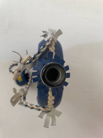 Selling as a set 2 liquor flasks. The bottles are empty. Red: 9"tall x 6"x2.5". Blue: 5"tall x 4"x1.25". Pre-owned vintage and in good condition. The leather and the glass are in good shape. The caps work just fine and are easy to remove. Listed price includes 2 flasks.