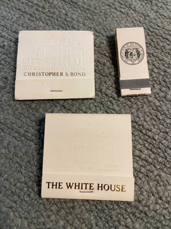 This collection of three vintage matchbooks includes those from the Reagan White House, the office of Gov. Christopher “Kit” Bond, and the Missouri Senate Lounge. Payment of $10 via PayPal or Venmo...