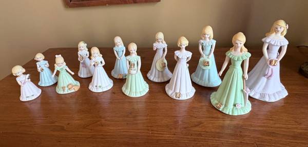 REDUCED: These beautiful porcelain figurines by Enesco are the perfect annual gift to celebrate a girl's birthday. The set includes 12 blond figurines for ages 5 to 16. All are in perfect condition. Current retail price is about $232 total but I am offering all 12 for $50.