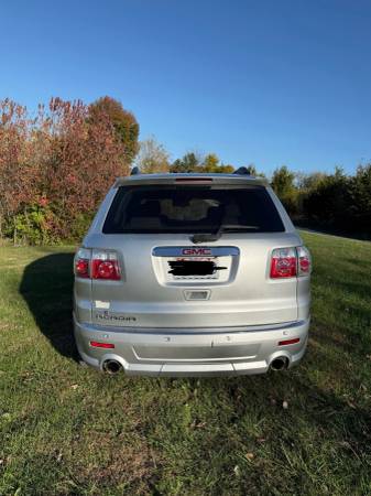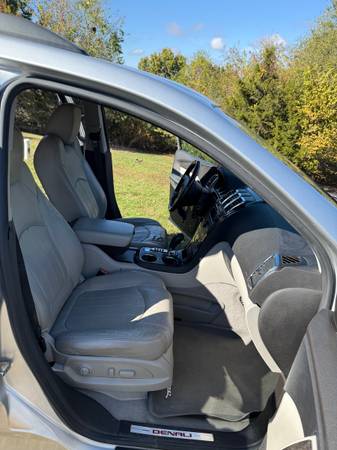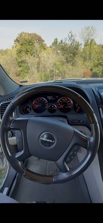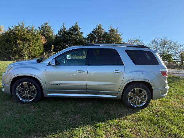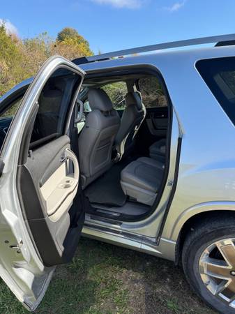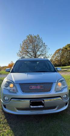 $5,000 for a 2011 FWD GMC Acadia Denali in good condition. This car has a lot of bells and whistles! 132,500 miles. Hologram speedometer. New battery 2025. Blower Resistor replaced 2025. Replaced passenger side headlight 2024. 108,683 miles Transmission serviced. Oil changes every 5,000 miles with synthetic oil. Seats 7. Captain seats in second row. Full third row. Heated / cool seats in the front. Rear controls of air system. Needs new struts and shocks on the front of the car. “Service Air Bags” notifications does pop up but does not affect function. Sound system does not work including radio. Amplifier has been replaced, may just need new speakers.