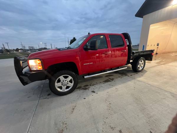 2012 Chevy crew cab 2500 , gas, 6.0, 4wd, flatbed, gooseneck ball, ranch hand bumper, 101,000 miles. Asking 19,000 Good farm truck. Not perfect by any means but mechanically sound.