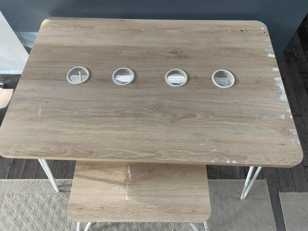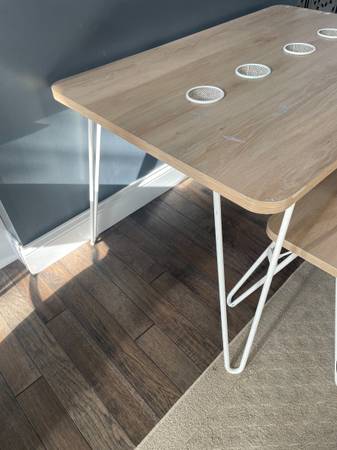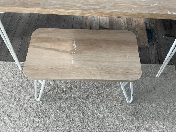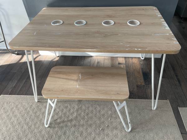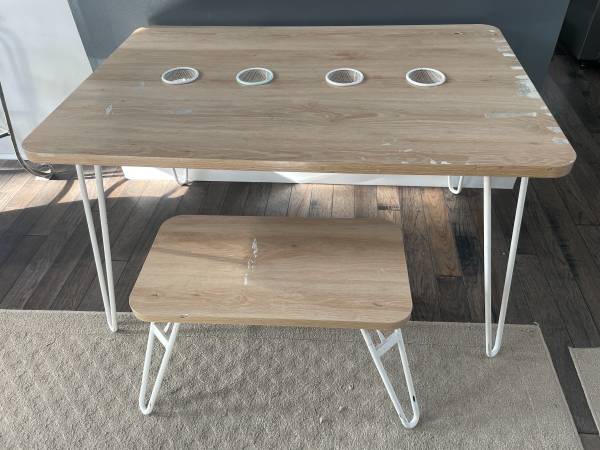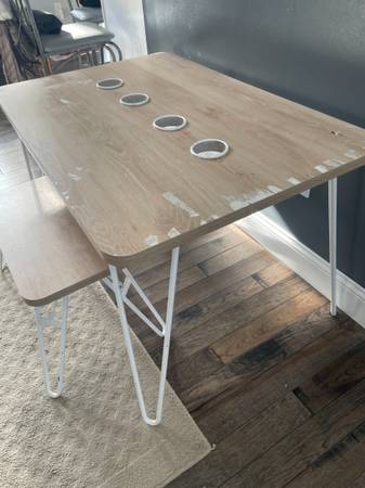 Selling as a set kids craft table and bench seat. Table: 24" tall x 42" long x 28" wide. Bench: 14" tall x 23" long x 12" wide. Very sturdy. Pre-owned and in OK condition. The table and bench have...