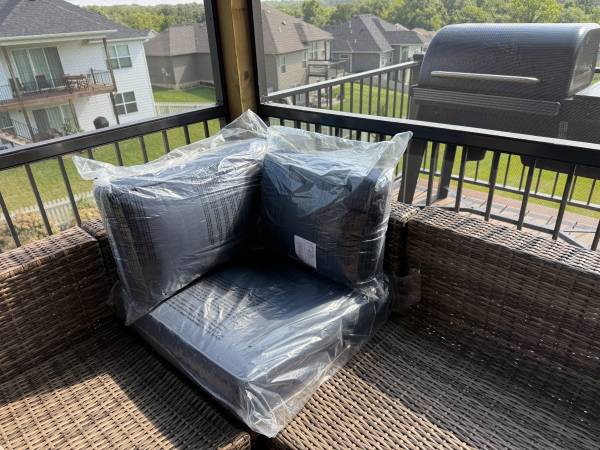 Three new Sunbrella cushions for outdoor furniture. The two back cushions are different lengths to fit a corner or end of a sectional (as pictured in the corner spot).