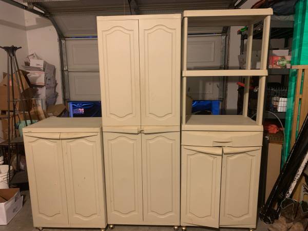 3- durable utilitystorage units on casters with lockable doors. 2-tall $50ea/1-short $25/or/all 3-units $100 total.