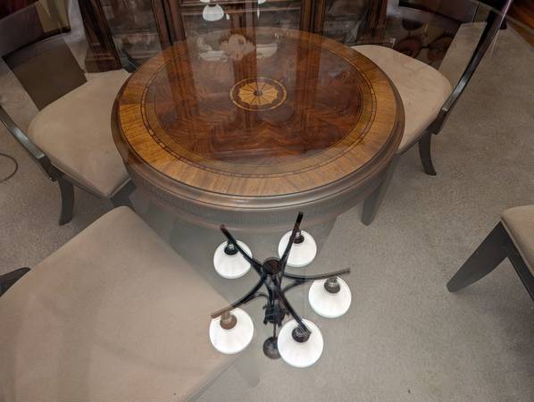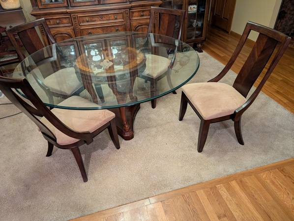 Beautiful high quality. 64 inch diameter glass top. With 6 chairs. $300.00