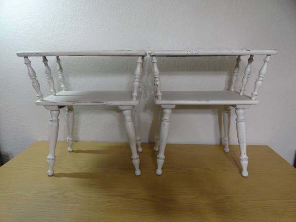These tables are still for sale! This add will be removed when sold! 2 White tables -- 2 for $40.00 20 X 14 X 23 Located in Jefferson City, text or call 573-7-One-4-Four-2-Five-5 NO shipping!