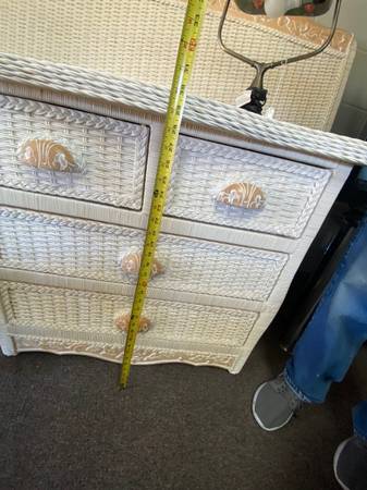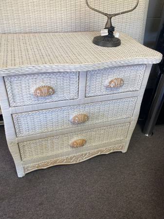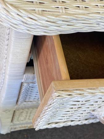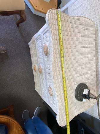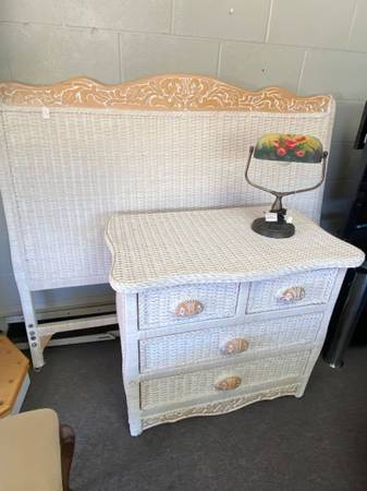 Wicker set HEADBOARD and BEDSIDE MATCHING TABLE. Nice decorative design on the headboard and matching design on the table. Heavy Very well made set. No particle board!! Priced right to sell. If...