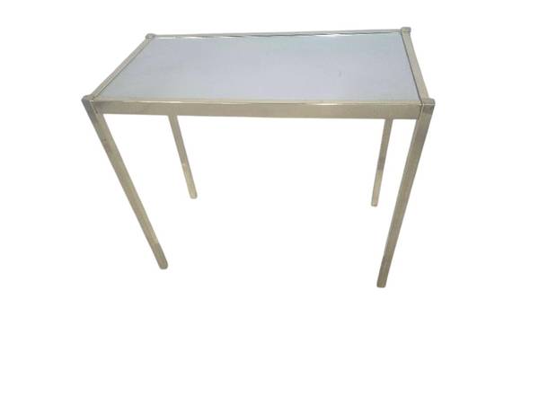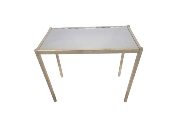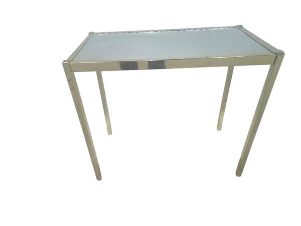 Elevate your space with the Vintage Mid Century Modern Hollywood Regency Gold Metal Glass End Table, an exquisite piece that blends timeless design with a touch of classic sophistication. The sleek glass tabletop sits atop a sturdy metal base, offering both durability and a hint of modern elegance. Measuring at 28 inches in height, 17 inches in length, and 32 inches in width, this side table is perfect for tucking in next to your sofa or bed, providing a chic spot for your favorite decor. With its nod to the Hollywood Regency style, the table's gold metal frame exudes a luxurious vibe, making it a standout addition to any room. Whether you're aiming to create a chic living area or a sophisticated bedroom, this end table's antique charm and stylish materials ensure it will be a cherished piece in your home