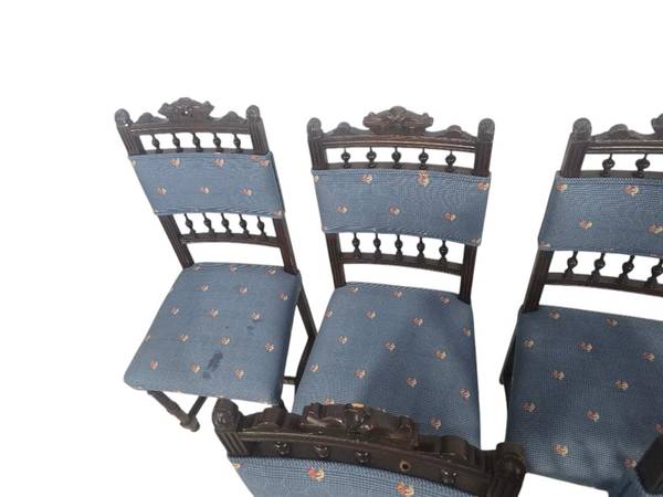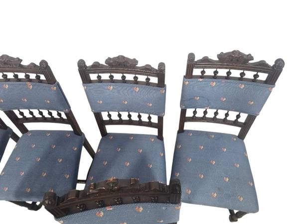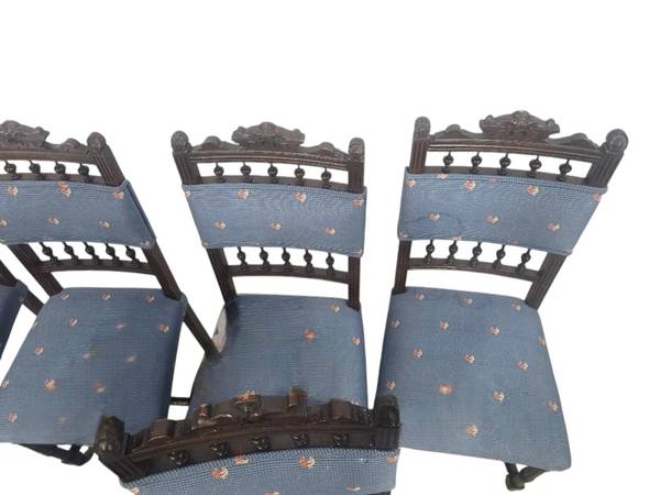Bring timeless Victorian charm to your home with this beautiful set of 6 antique dining chairs. These chairs feature:
