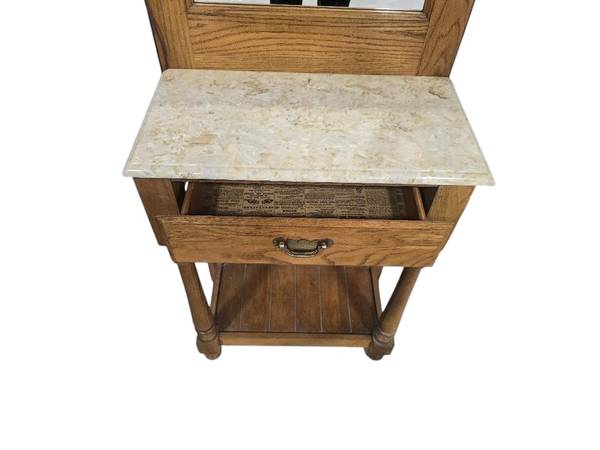 Originally placed in an entryway or hallway, this piece served as a multi-purpose hall stand: