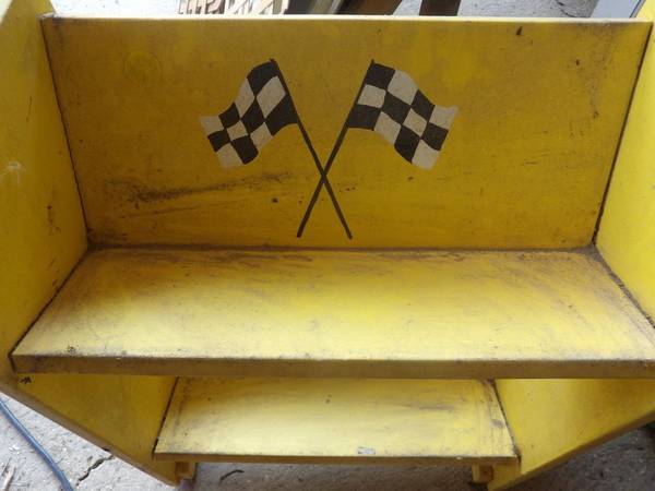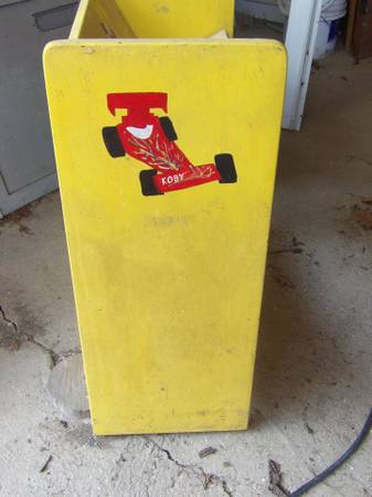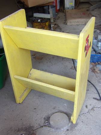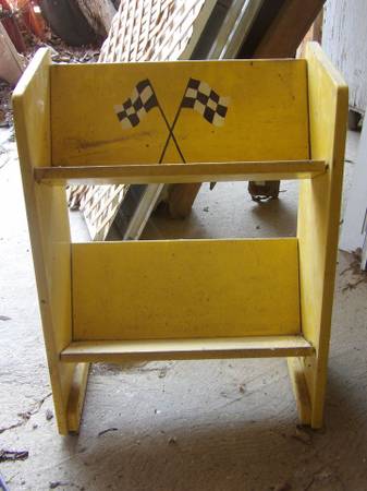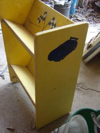 Wooden Yellow Shelf: 22" long, 30" tall, 24" wide. Shelves are 20" long, 6 3/4" wide. In good shape, Cute little shelf, can be repainted or decorated. $20 Located in Salem, MO.