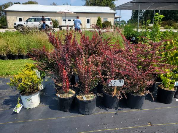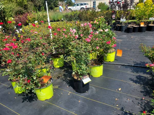Knockout Roses : Peachy, Orange Glow, Double Red, Double Pink. Disease resistant, and self dead-heading. Grow 3-5' tall and wide.