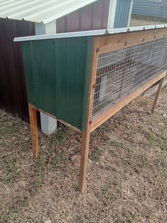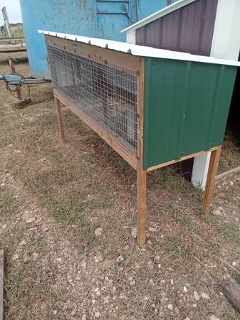 New! 6 ft. X 2 ft. Rabbit Hutch 2 pens ( 2 compartment ) hay or grass rack between pens. $ 325.00 each. 1 Green sides and white roof Call at ; five seven three three seven eight seven one four one