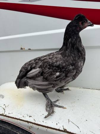 I have two, 3 month old pullets. They are barnyard mixes. $15 each Located near Pierpont.