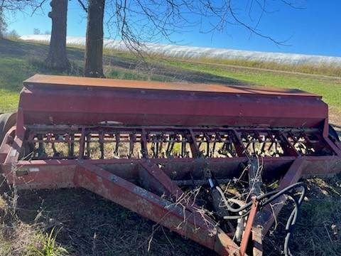 I have a 5100 International Dual Disc Drill for sale. It has 6-inch spacing, double disc openers, press wheels, and hydraulic lift.