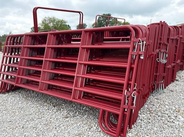 12' Red or Green Corral/ Round Pen Panels -5' tall -6 horizonal bars, 3 upright braces -Painted 19 ga. steel -Drop pin connection -🔴RED and 🟩GREEN available 6' Bow Gates - $135 12' Combo Panels -...