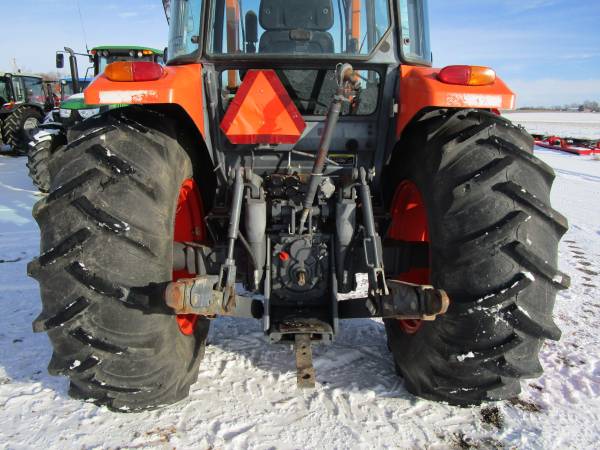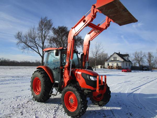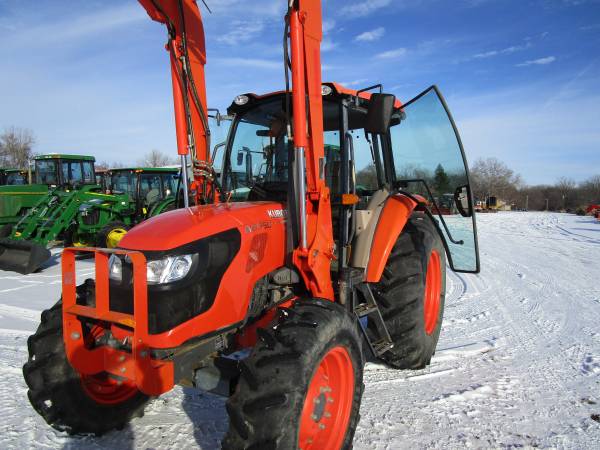 2014 Kubota M8560 tractor, 4wd, only 1507 hours, 85 horsepower, 12 speed transmission w/ LH hydraulic shuttle, 3 point hitch, 2 rear hydraulic remotes, 540 pto, cab, air, heat, stereo, diff lock, grill guard, rear tires 18.4x30 @90%, front 12.4x24 @60%. Comes with a Kubota LA1353 loader with 3 function joystick (plumbed to front for grapple), mid valve and 6' skid steer quick attach bucket. No DEF. Very nice tractor, excellent condition. $43,900. Trades welcome. Financing and delivery available. Lots of tractors and equipment at bnttractor.com