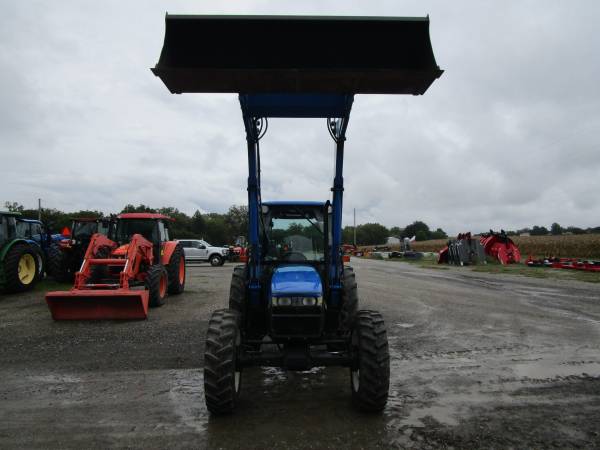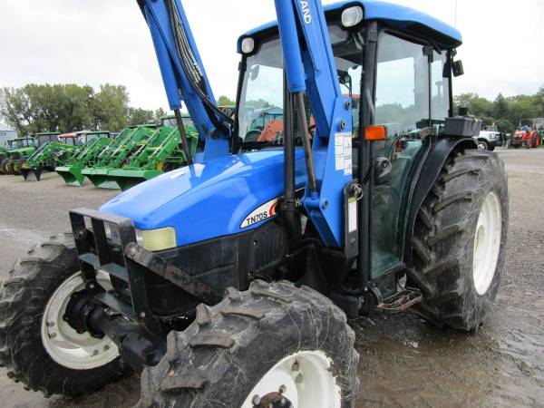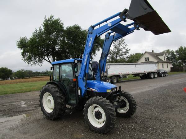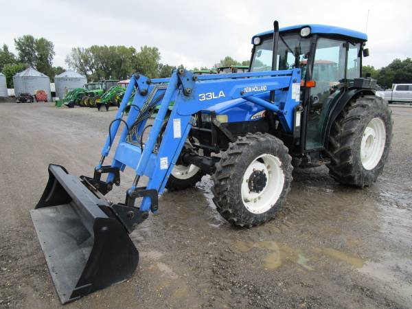 2004 New Holland TN70S tractor, 4wd, 4527 hours, 69 horsepower, 16 speed transmission w/ LH power shuttle, 3 point hitch, 1 rear hydraulic remote, 540 pto, cab, air, heat, rear wiper, tool box, grill guard, rear wheel weights, rear tires 16.9R30 @70%, front 11.2x24 @50%. Comes with a New Holland 33LA loader with joystick, mid valve and 80" skid steer quick attach bucket. Pre-Emissions. No DEF. No Re-Gen. Local trade, nice tractor, runs and works great. $26,900. Trades welcome. Financing and delivery available. Lots of tractors and equipment at bnttractor.com