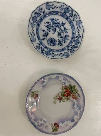 Selling as a set 2 German dessert plates. 1-blue trim with cherries, 7" diameter. 1-Meissen blue 6.75" diameter. Good pre-owned condition. There are light use & wear marks. The list price is for...