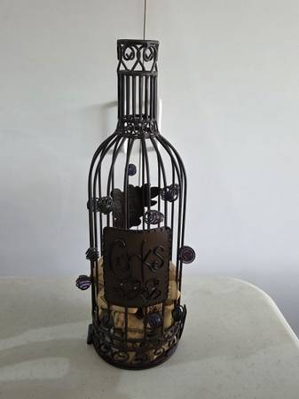 Black Wire Wine Bottle Cork Holder. $5 cash. No emails.