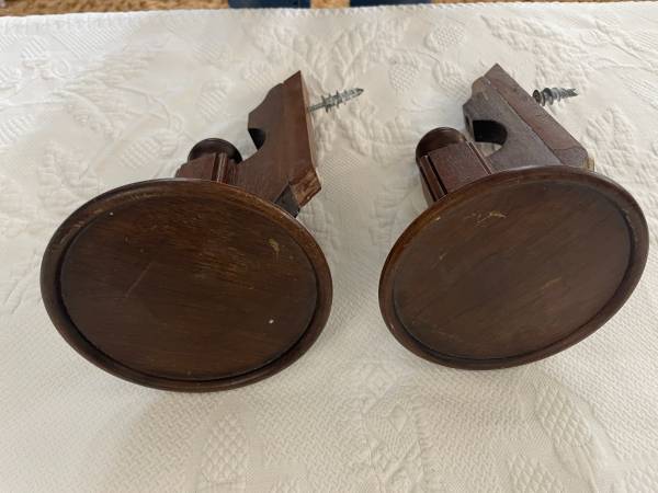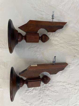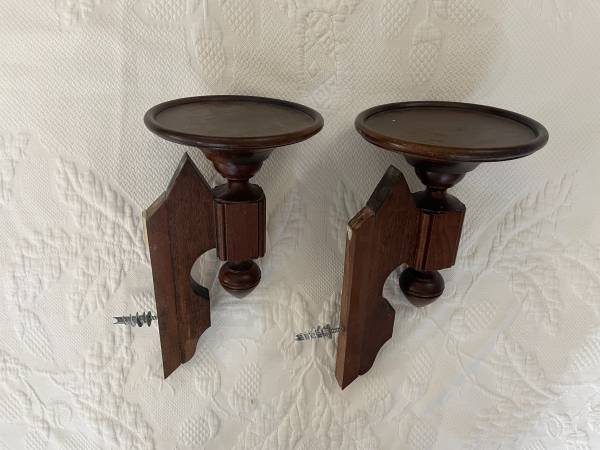 Selling as a set 2 candle holders that screw into the wall. Holds up to a 5" diameter candle. Pre-owned and in good condition. There are light use/wear marks. The list price is for 2 candle holders.