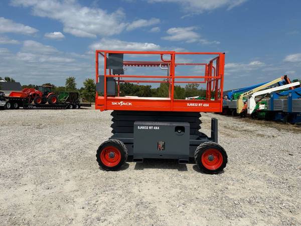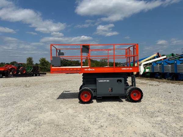 view more pictures @ kensautosandrepair.com 2016 Skyjack 6832RT 4WD 32’ Diesel Rough Terrain Scissor Lift Serial Number: 37008718 Hours: 2,243 Weight: 7700lbs Engine: Kubota D902-EF01 Diesel Year:...