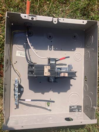 Removed from well house, Works, double pole 30 amp breaker, single breaker does not work four spaces in box, Cutler hammer.