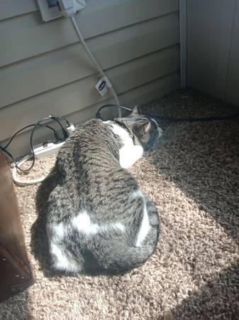 This Noodle, we found him outside our house about a year ago since then he's been fixed and had his shots. He is a wonderful cat full of love and affection for people, and is the biggest baby in the world. Sadly after many attempts we need to find him a home without other pets or small children. As he has now attacked 3 different cats with intense aggression, and he does not like small kids and I wouldn't risk him around them. If he's on his own he is very well behaved and perfect in every way.He will come with his litterbox, toys, treats, and his blankets etc. We are willing to travel within an hour or so for the right home. We are asking a small rehoming fee to ensure he goes to the right home. Please text with any questions, thank you