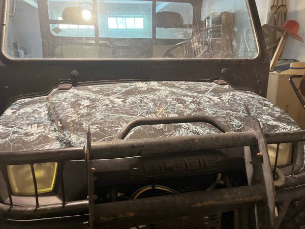 ‘08 Polaris Ranger, very good shape, starts right up every time. Some seat damage, but not super bad. $10,500 obo 203 hours New tires all around 5k pound winch Tow package Camo paint, even the rims...