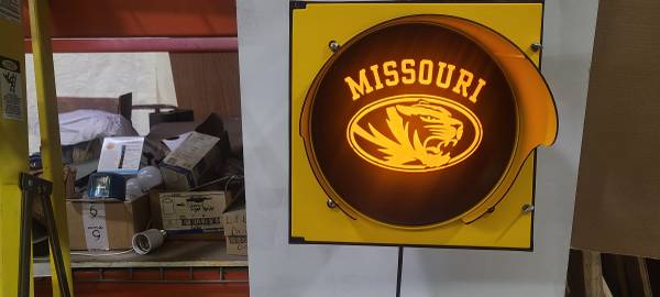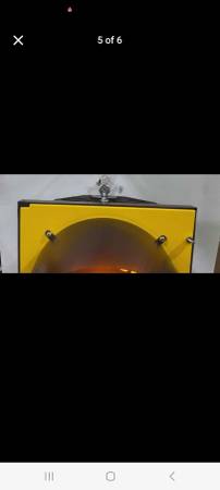 Selling real working used polymer traffic signal 15"X15"X15 with switch cord and eyelet on top for hanging 120 volt LED lens HAND PAINTED