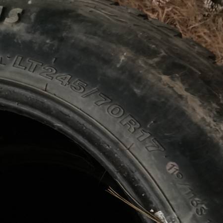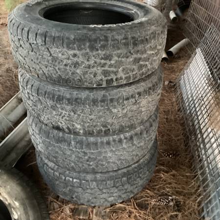 Four free 17 inch 10 ply tires. Just pick them up. Good solid tires for trailer or whatever. Lots of miles left in them, came off my Dodge Ram.